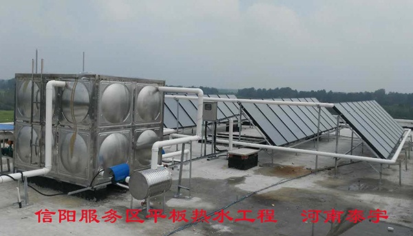 信陽高速服務(wù)區(qū):信陽高速服務(wù)區(qū)太陽能熱水工程,采用平板太陽能與電輔助加熱相結(jié)合,日產(chǎn)熱水量約為10T。