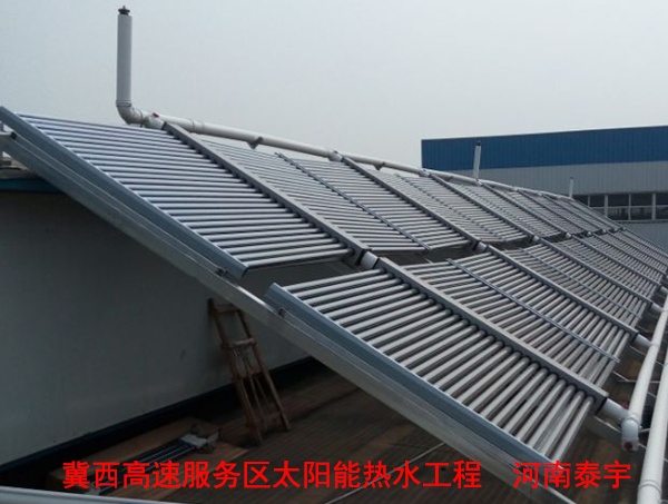 冀西高速服務(wù)區(qū)太陽能熱水工程:該圖為冀西高速服務(wù)區(qū)太陽能熱水工程,該項(xiàng)目主要采用榮事達(dá)真空管集熱器與電輔助加熱相結(jié)合,共計(jì)四個(gè)熱水系統(tǒng),單個(gè)系統(tǒng)日供熱水量約為6T左右,節(jié)能效果顯著!